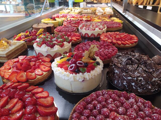 Vous trouverez dans notre assortiment toutes sortes de pâtisseries (Tartes fines, éclairs, tartes citron, framboise ou chocolat, flans pâtissiers) pour toutes occasions. Et pour les gourmands des Brownies, gâteaux poire-amande, muffins, chouquettes, sablés.
